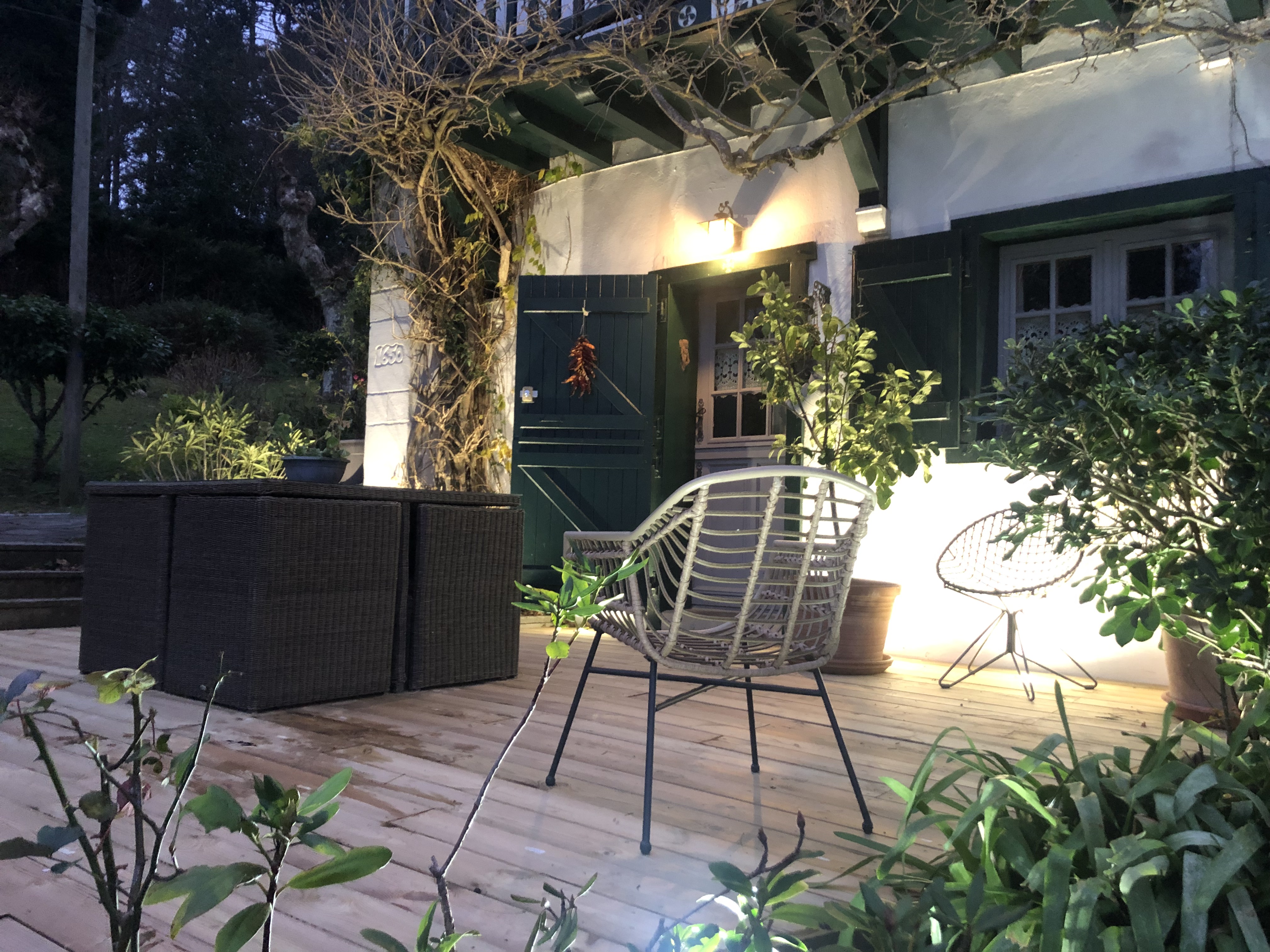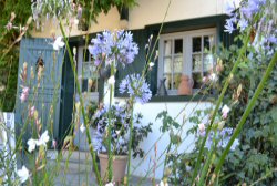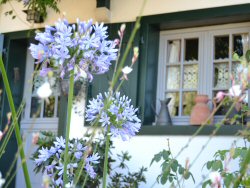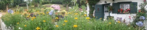 Des fleurs en toutes saisons à proximité. Le reste du jardin invite au repos et à la contemplation. |